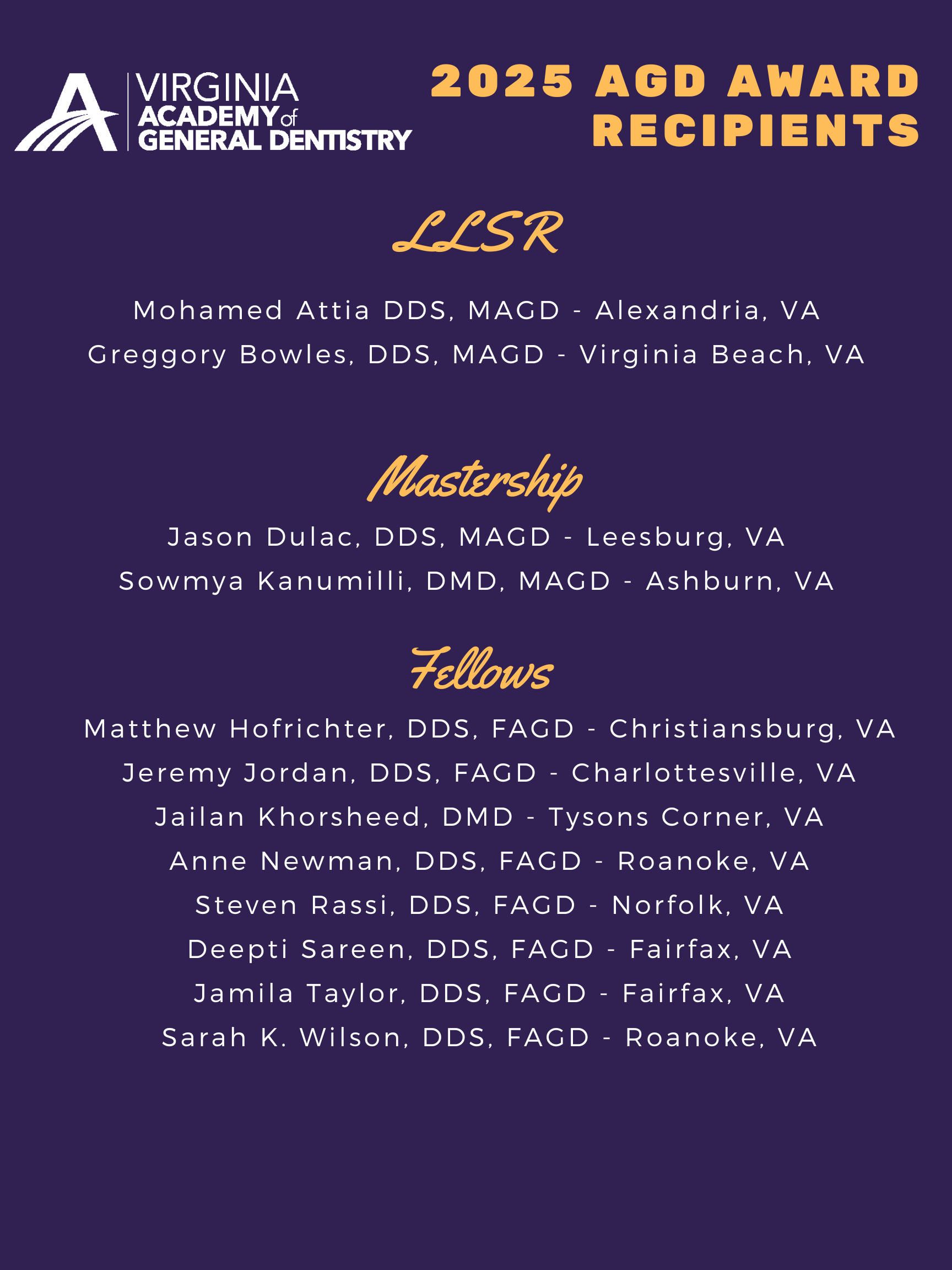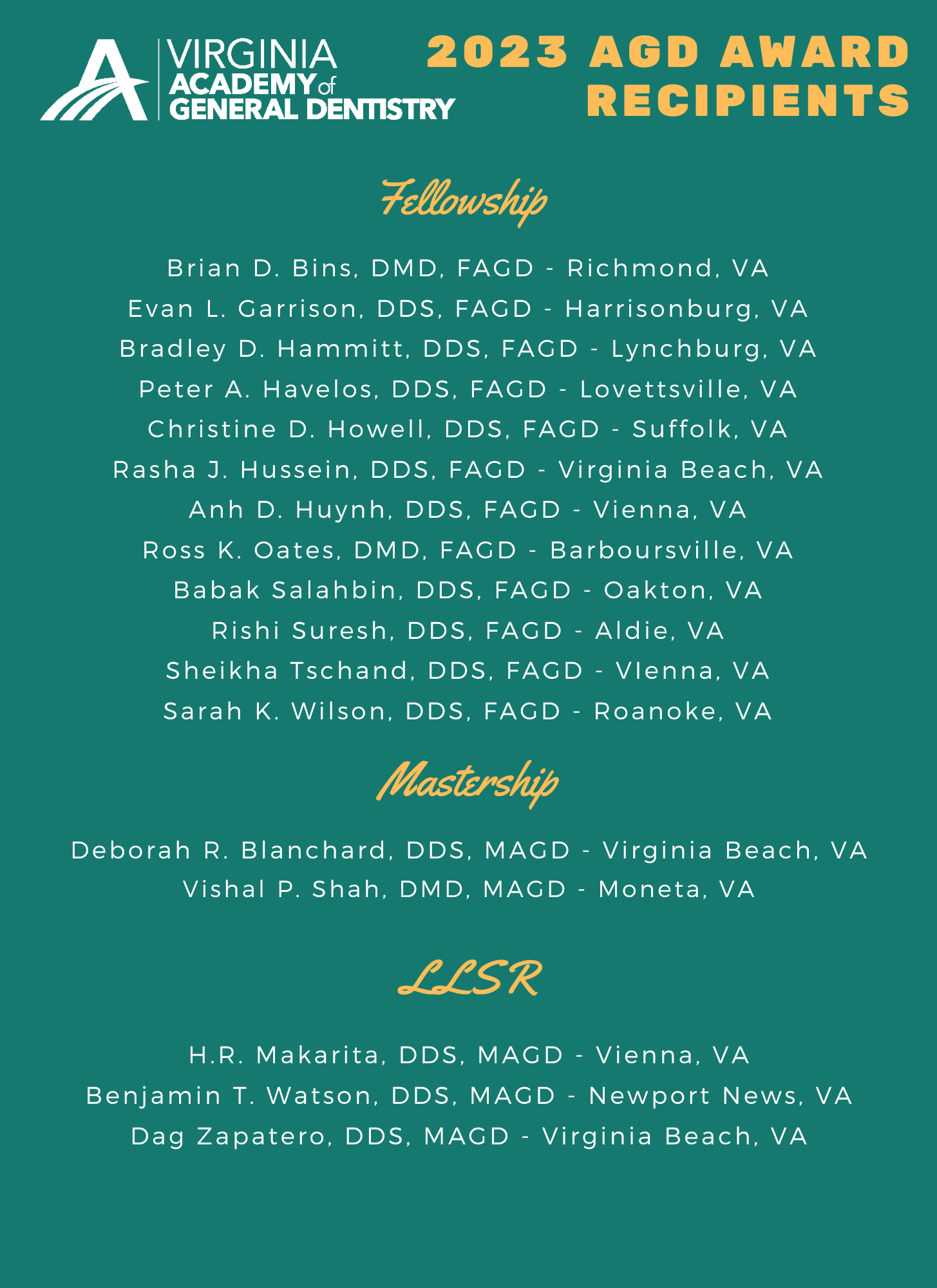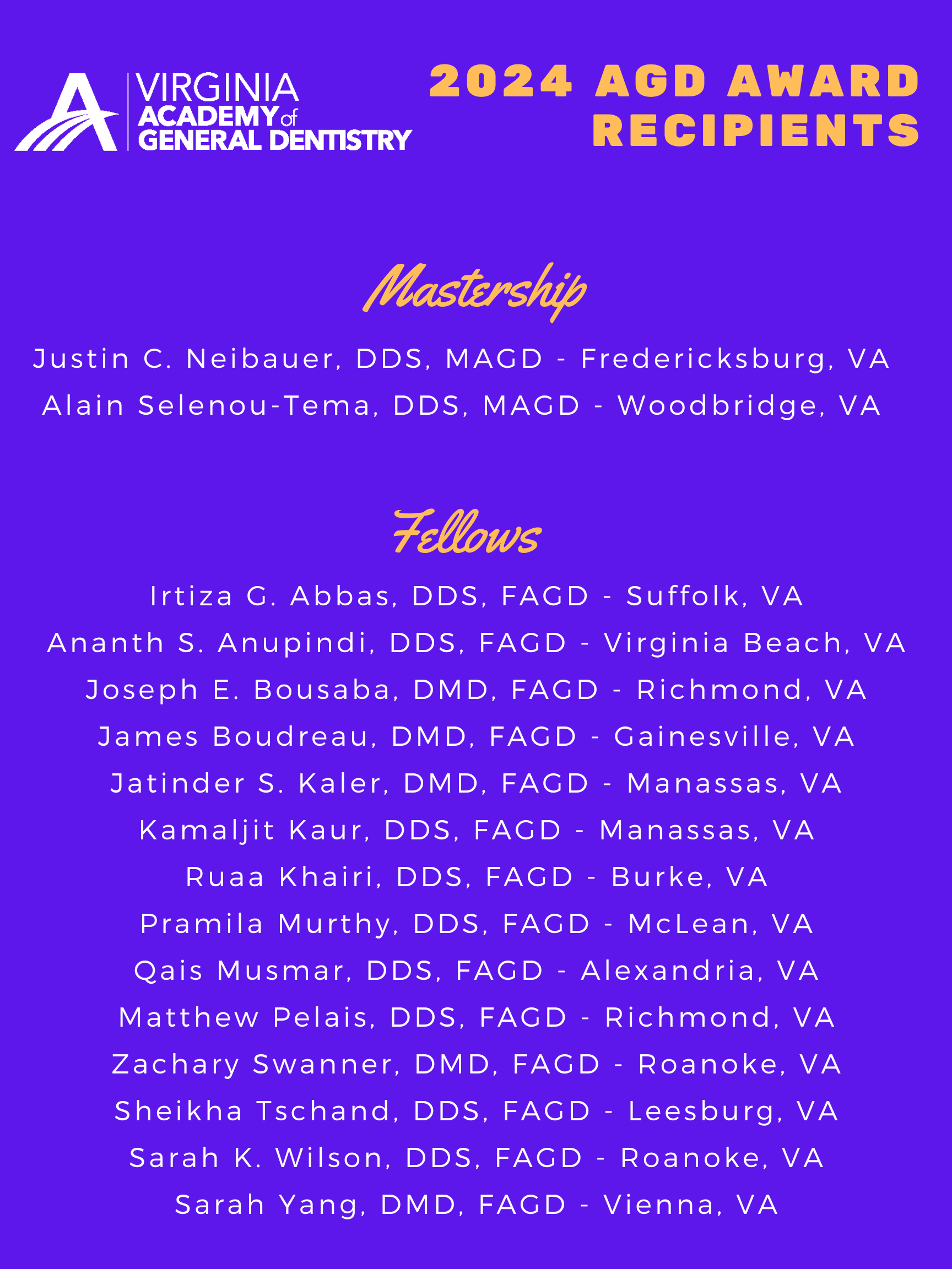 The Academy of General Dentistry is the only organization that exclusively represents the interests and serves the needs of the general dentist. The AGD provides members with the education, advocacy, resources, and information they need to advance themselves in the dental profession while providing their patients with the best care possible.